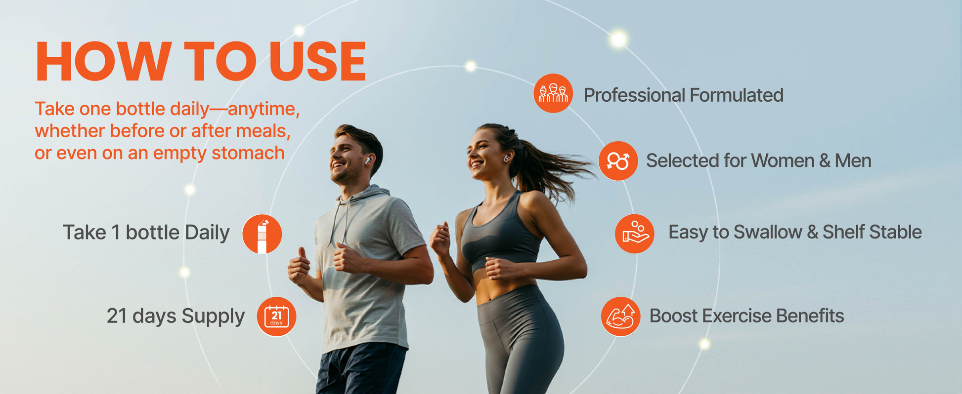 Take the contents of 1 Daily Pack (1 liquid and 2 tablets). Shake the bottle well before consuming. GLPro can be taken at any time of the day, with or without food in your daytime routine.