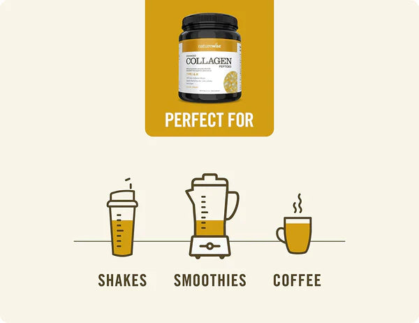Getting supplemental collagen in your diet is easy with NatureWise’s unflavored supplement. Simply add one scoop to any beverage or meal and stir. Due to the powdered nature of the product, warm or hot foods and drinks are recommended for the best results.