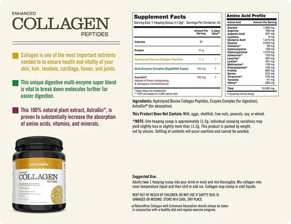 - NatureWise Enhanced Collagen Peptides include both hydrolyzed type I collagen and type III, providing multiple benefits throughout the body.*